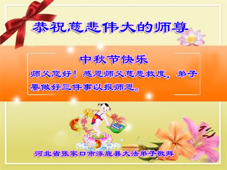 【明慧网二零二一年九月十九日】 河北省张家口市蔚县大法弟子恭祝师尊中秋快乐!
