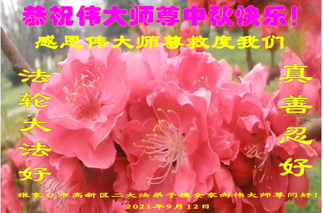 恭贺伟大师尊中秋节快乐! 感恩伟大师尊救度我们 法轮大法好!真善忍好! 2021年9月12日 河北省张家口高新区二大法弟子携全家向伟大师尊问好!恭贺伟大师尊中秋节快乐!