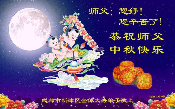 【明慧网二零二一年九月十九日】 四川省成都市郫县大法弟子恭祝慈悲伟大的师尊中秋节快乐!
