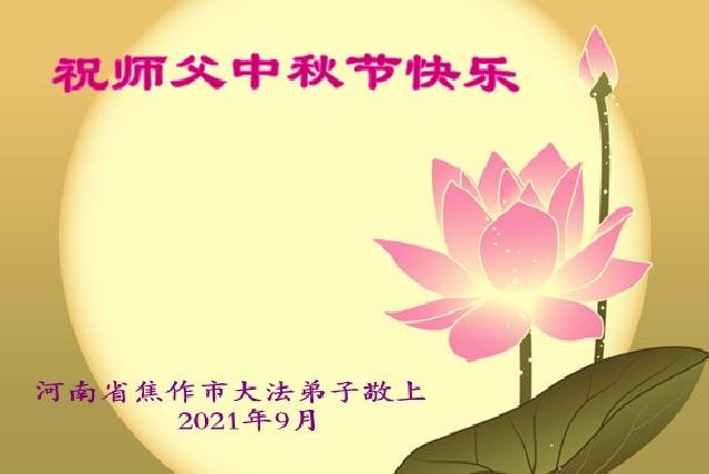 师父:您好!您辛苦了! 您为救度众生日夜操劳,您为成就弟子费尽心血付出了一切。您为弟子在巨难中承受一切痛苦。弟子听师父话,多学法、学好法、修成一个无私无我的生命,多救人。 恭祝师父中秋节快乐! 2021年9月17日 河南省焦作市大法弟子恭祝师尊中秋快乐!