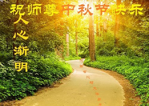 师尊中秋快乐! 我们知道自己还有很多不足,但是谢谢师尊把这么好的大法传度于我们,我们一定会在以后的时间里,更加努力的做好三件事,更加努力做到修炼如初,勇猛精進。 河南洛阳大法弟子恭祝师尊中秋节快乐!