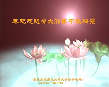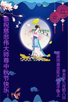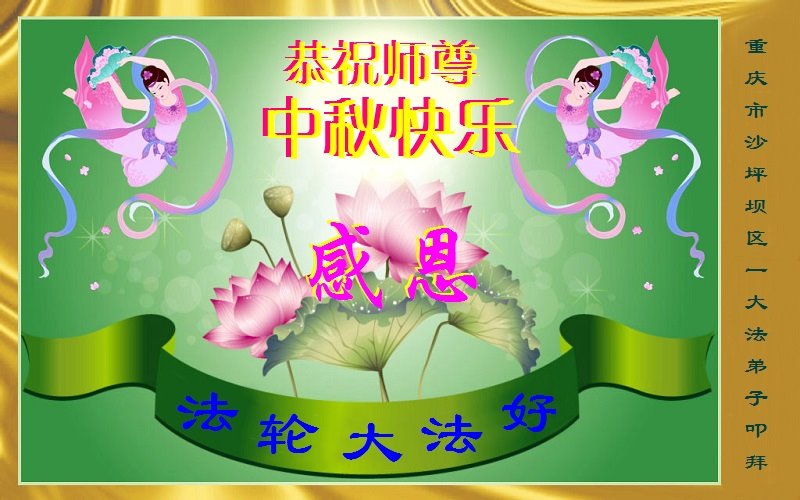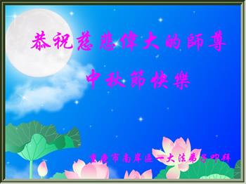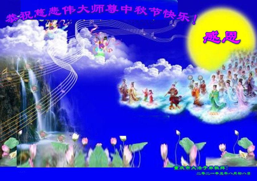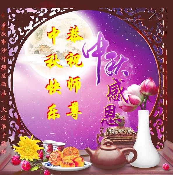 恭祝师父中秋快乐! 弟子感恩师父慈悲救度!我们听您的话,修好自己,做好三件事,证实大法,多救众生! 重庆市沙坪坝区一大法弟子恭祝慈悲伟大的师尊中秋节快乐!