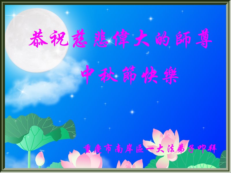 重庆市九龙坡区一大法弟子恭祝慈悲伟大的师尊中秋节快乐! 重庆市九龙坡区一大法弟子敬上 重庆市渝北区大法弟子恭祝伟大的师尊中秋快乐!
