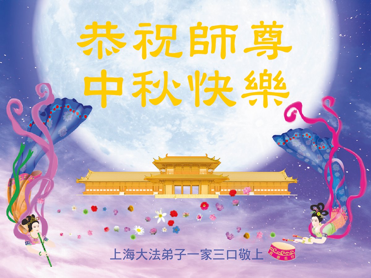 恭祝慈悲伟大的师尊中秋快乐! 上海一家大法弟子敬上 四川省资阳市及在上海市的大法弟子全家及亲朋敬拜恭祝师父中秋节快乐!
