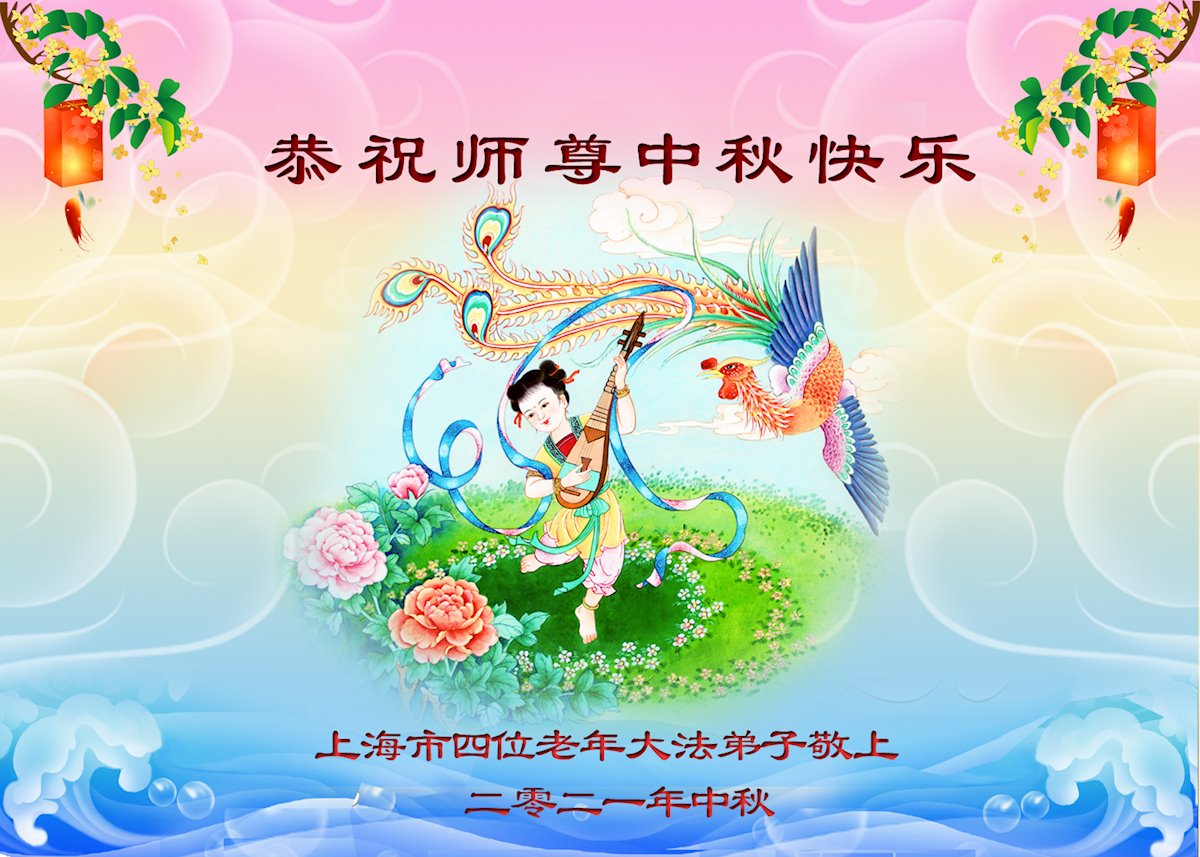 上海市四位老年大法弟子恭祝师尊中秋快乐! 上海市大法弟子一家三口恭祝师尊2021年中秋节快乐!