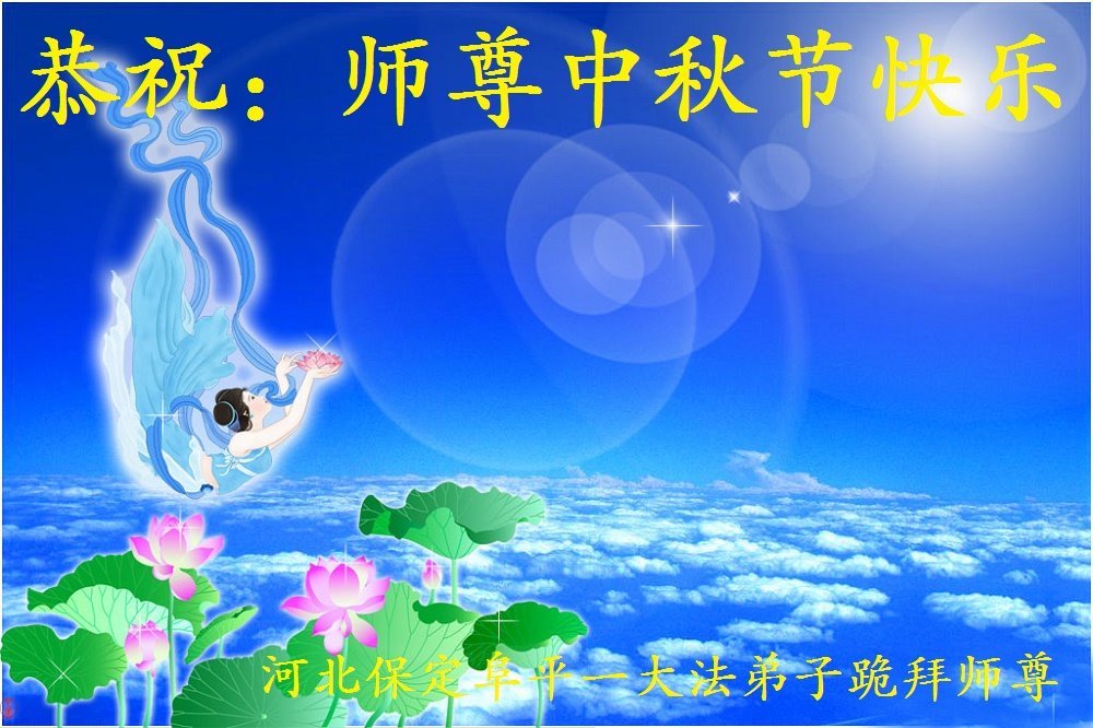 河北省保定市一夫妻同修恭祝慈悲伟大的师尊中秋节快乐!