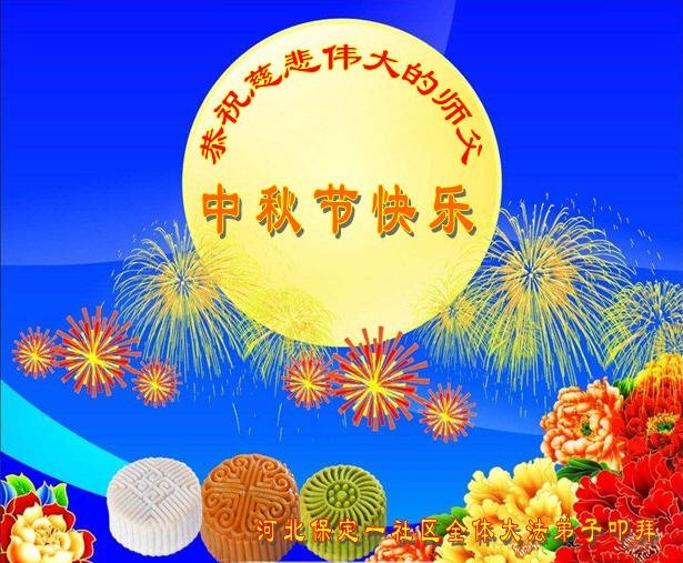 河北省保定市容城县一大法弟子及全家恭祝师父中秋节快乐!
