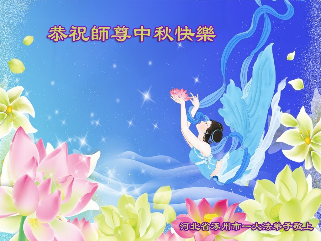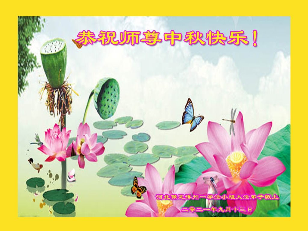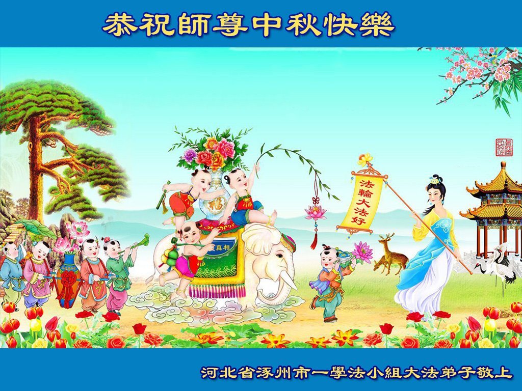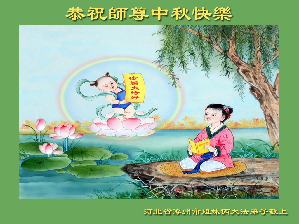 弟子们感谢师尊的慈悲苦度!谢谢师尊!师尊您辛苦了! 河北省涿州市一学法小组大法弟子敬上 河北省保定市涿州市姐妹俩大法弟子恭祝师尊中秋快乐!