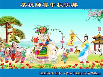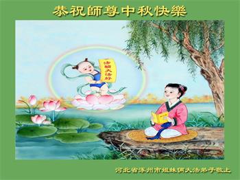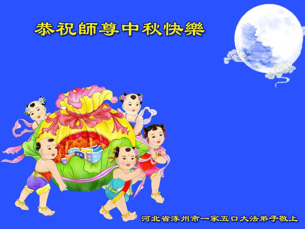 弟子们感激师尊的慈悲救度!师父您辛苦了,弟子们谢谢您! 涿州市一家五口大法弟子敬上 河北省保定市涿州市一大法弟子恭祝师尊中秋快乐!