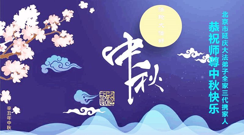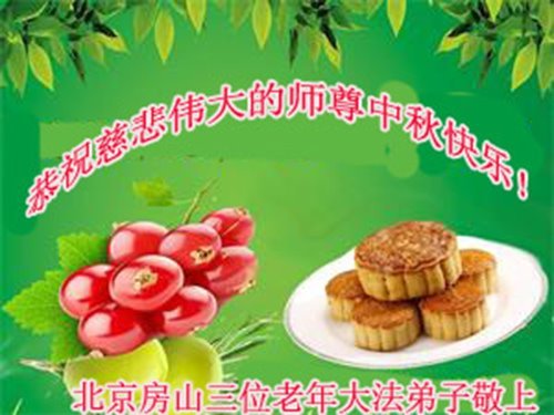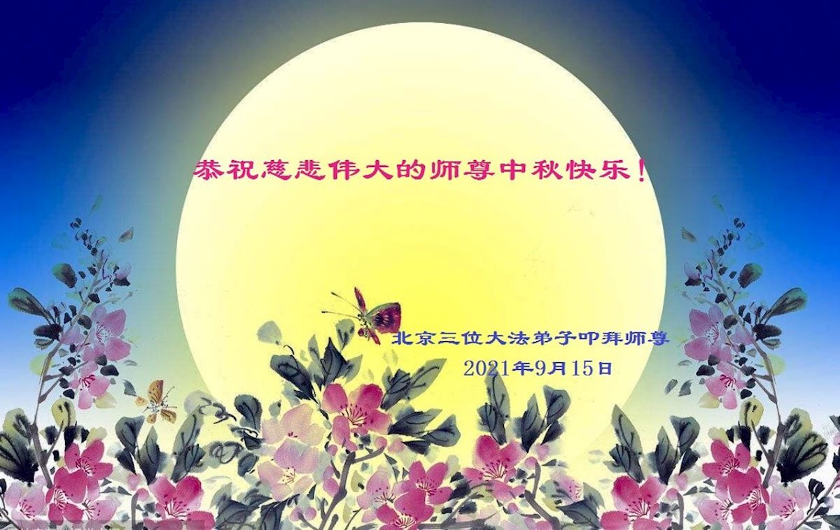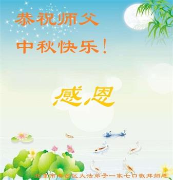 北京市三名大法学员和两名学员的家属恭祝师尊中秋快乐!感恩师尊的救度之恩,叩拜师尊!