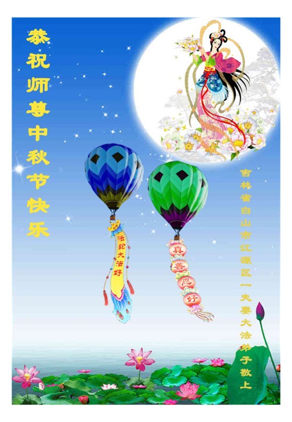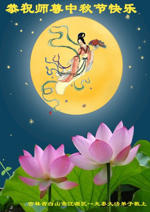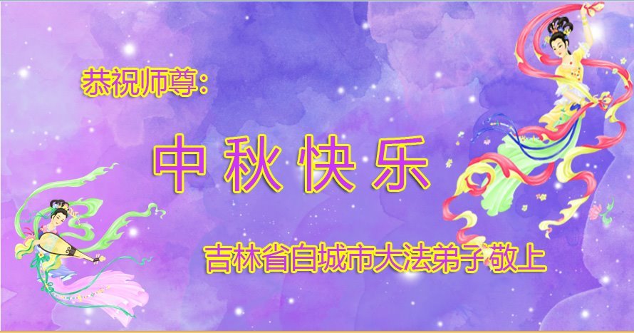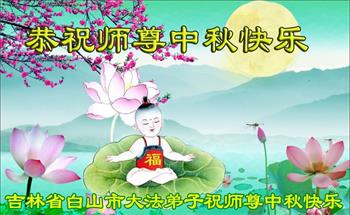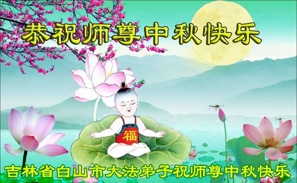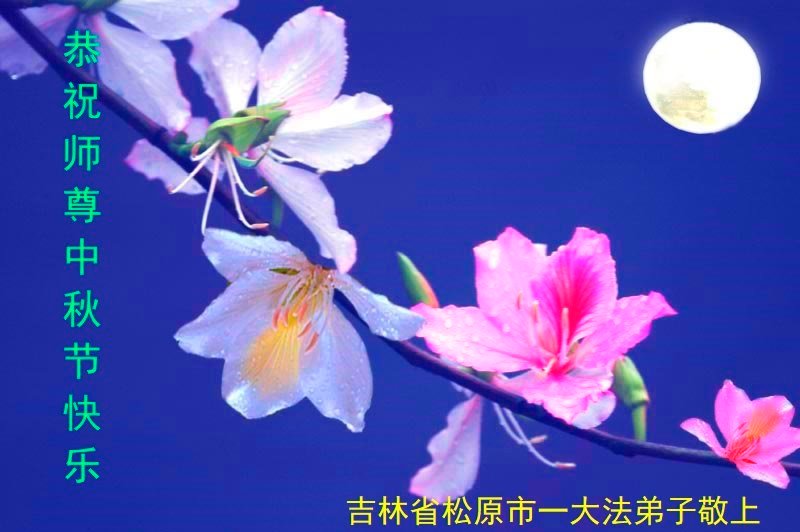 吉林农安大法弟子恭祝师尊中秋节快乐! 师尊您辛苦了,您为度我们不知付出了多少心血,弟子无以回报,只有精進、再精進回报师恩。 吉林白山一大法弟子恭祝师尊中秋节快乐!