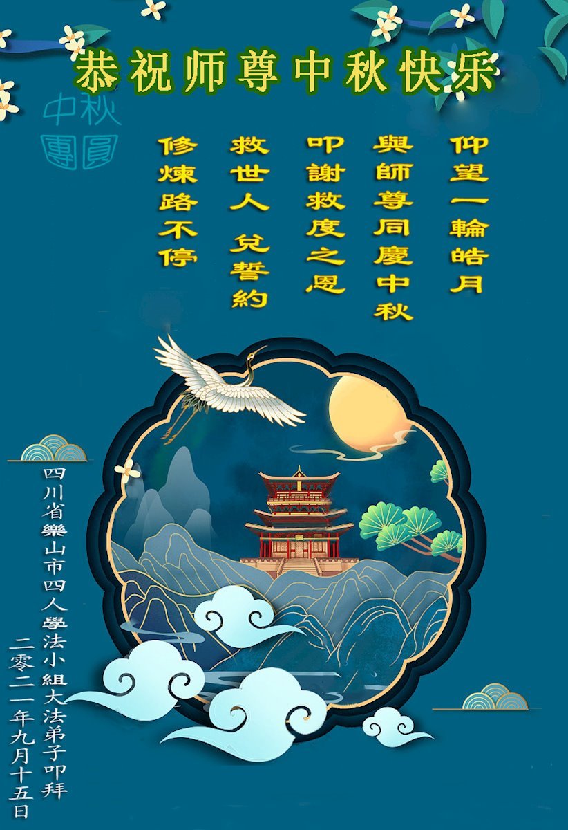 【明慧网二零二一年九月十九日】 四川省乐山市六人学法小组大法弟子恭祝师尊中秋快乐!