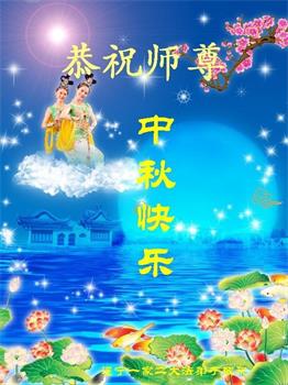 恭祝师尊中秋快乐! 仰望一轮皓月,与师尊同庆中秋,叩谢师尊救度之恩,救世人兑誓约,修炼路不停。 四川省乐山市四人学法小组大法弟子敬上 四川省遂宁市俩大法弟子恭祝师尊中秋快乐!