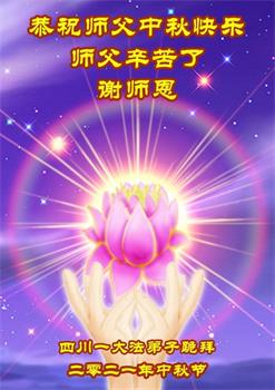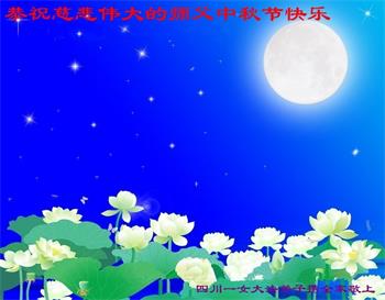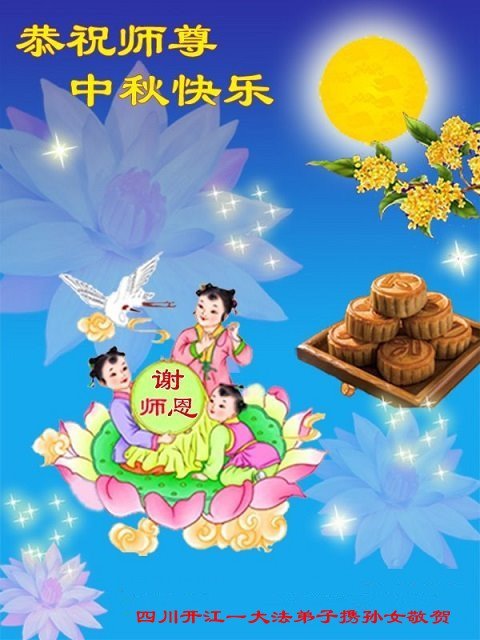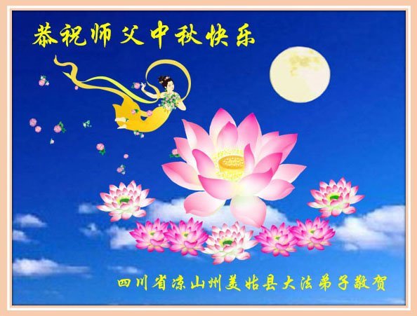 中秋佳节来临之际,每逢佳节倍思亲,在这阖家团圆的日子,弟子非常想念伟大的师尊!感恩师尊二十多年的一路保护!愿师尊早日回到大陆,相信这一天不会太远。 四川省德阳地区(德阳、广汉、什邡、绵竹、中江、罗江)全体大法弟子恭祝师尊中秋节快乐!