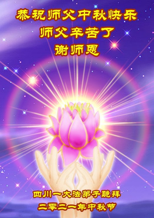 西昌市一大法弟子及小甥女怀着对师父的虔诚感恩恭祝慈悲伟大的师父中秋节快乐! 感恩师父一路看护,弟子在修炼路上才走到了今天,感恩师父给了弟子第二次生命!谢谢师父! 叩拜恩师 西昌市大法弟子及小甥女敬上 二零二一年九月十四日 四川自贡大法弟子衷心祝愿师父中秋快乐!