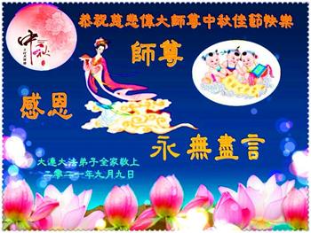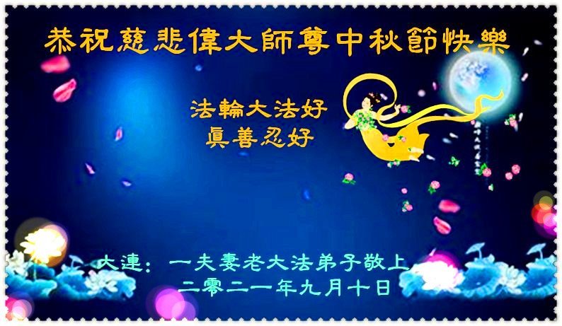 【明慧网二零二一年九月十九日】 辽宁省大连大法弟子恭祝师尊中秋佳节快乐!