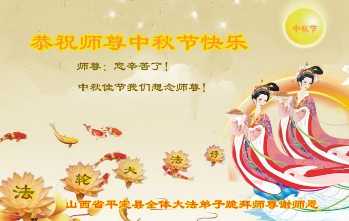 师尊您辛苦了!在正法的最后时刻,我们一定做好三件事,完成好我们的历史使命,盼望早日见到师尊。 山西省阳泉市平定县全体大法弟子恭祝师尊中秋节快乐!