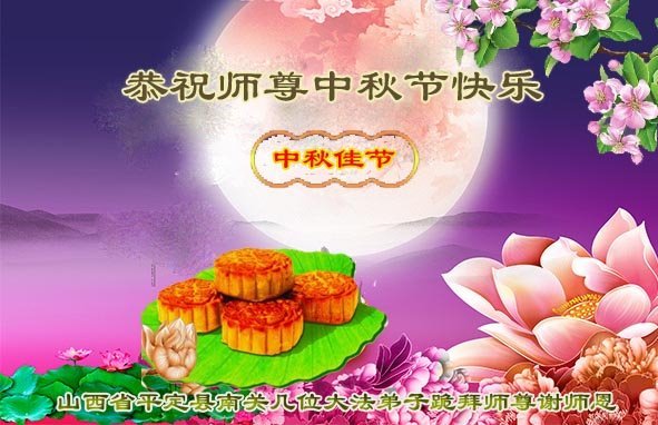 山西省平定县新华小区一大法弟子恭祝师尊中秋节快乐! 山西省阳泉市平定县南关几位大法弟子恭祝师尊中秋节快乐!