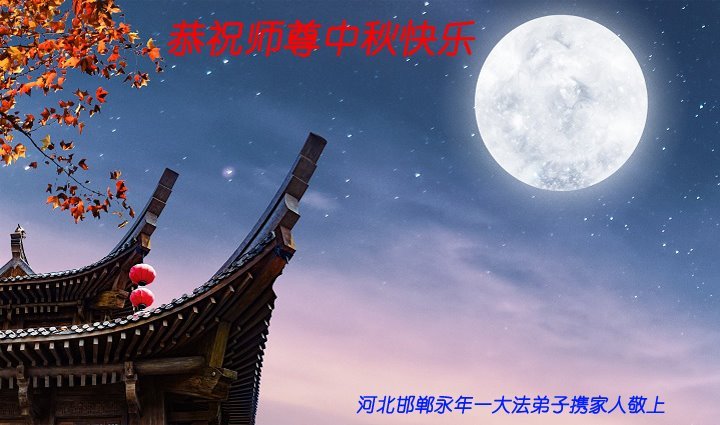 谢谢师尊!弟子一定做好三件事,勇猛精進,跟师父回家。 河北邯郸一大法弟子恭祝师尊中秋节快乐!