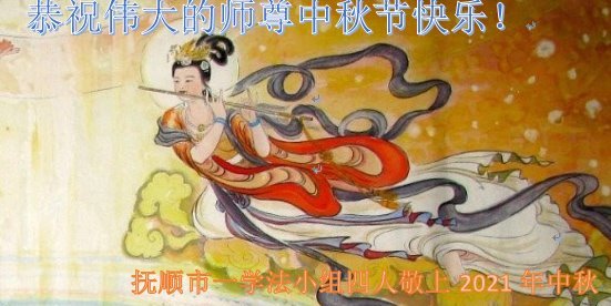 恭祝师尊中秋节快乐! 谢谢师尊!师尊辛苦了! 辽宁省抚顺市一学法小组大法弟子恭祝师尊中秋快乐!