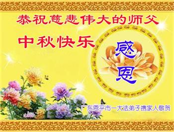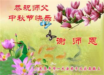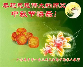 广东省江门市恩平市一大法弟子携家人恭祝师父中秋节快乐!