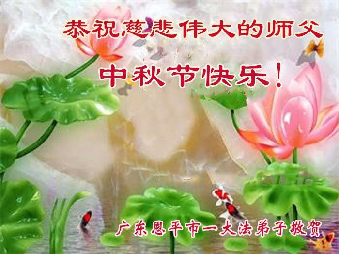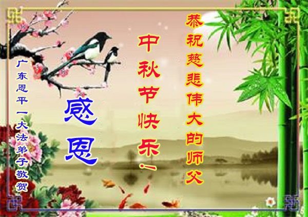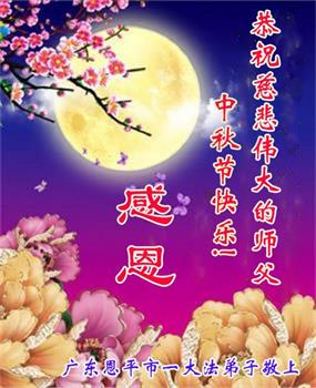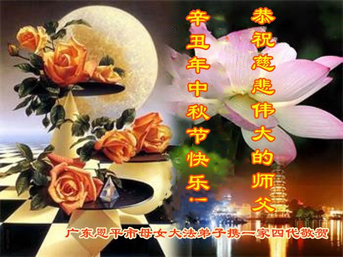 师父您辛苦了!感恩师尊的慈悲救度! 广东省汕头市金平大法弟子一家人恭祝师尊中秋节快乐!