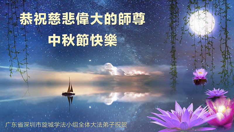 广东省深圳市大法弟子旋城学法小组全体大法弟子恭祝慈悲伟大的师尊中秋节快乐!
