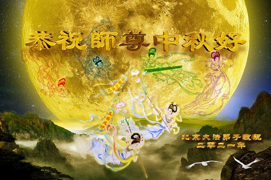 北京市朝阳区双井地区大法弟子合十叩拜:恭祝敬爱的师尊中秋节快乐!师父好,法轮大法好、真善忍好!在这末世之末的乱世里,弟子深感师父的慈悲救度之恩,用尽人间最美的语言也无法表达弟子感恩之心。在剩下的有限时间里,弟子将不遗余力的遵照师父的教诲,认真学好法,做好三件事,修好自身多救人,完成自己的历史使命,跟随师尊圆满回家。 报师恩 又逢中秋倍思亲 遥望长空念师尊 唯有精進再精進 圆满回天报师恩 北京一学法小组全体大法弟子恭贺伟大师尊中秋快乐!