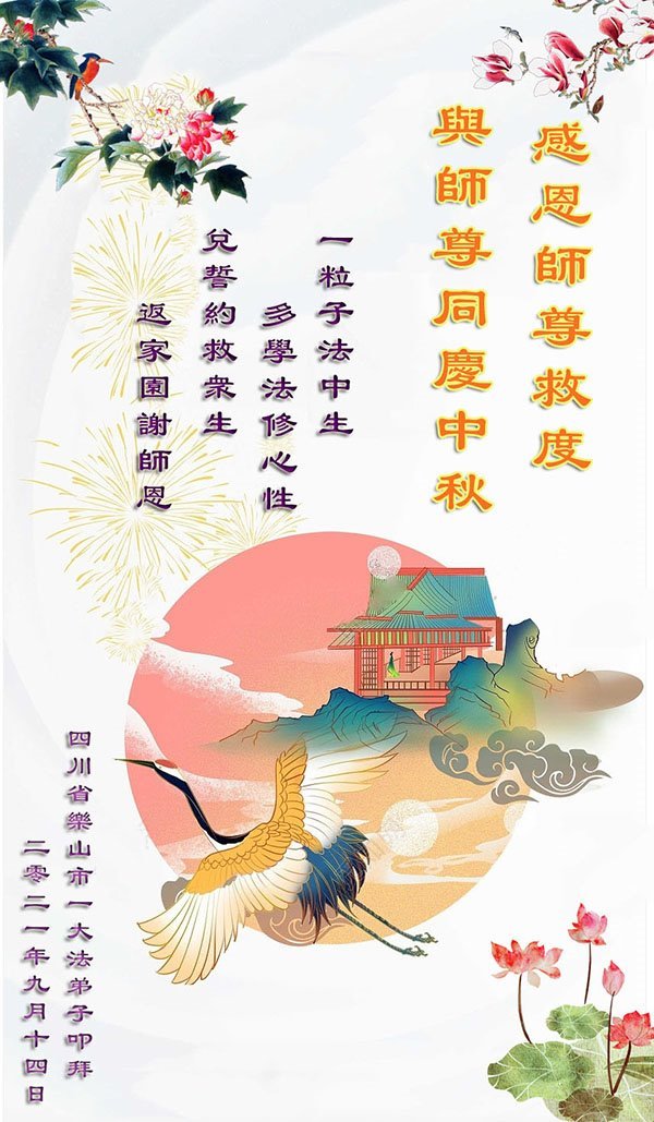 【明慧网二零二一年九月十九日】 四川省乐山市大法弟子恭祝师尊中秋节快乐!