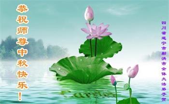 感谢师尊的慈悲苦度!感谢师尊的救度之恩!法轮大法好!真善忍好! 四川省遂宁市射洪市全体大法弟子恭祝师尊中秋佳节快乐!