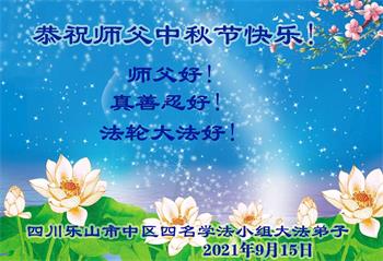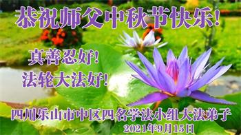 四川省乐山市中区四名学法小组大法弟子恭祝慈悲伟大的师父中秋节快乐!