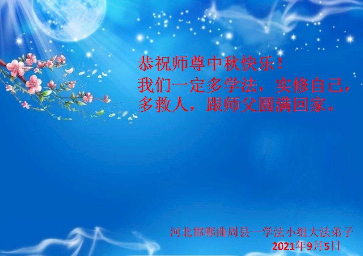 2021 年9月5日 河北衡水一家三口大法弟子恭祝师父中秋快乐!