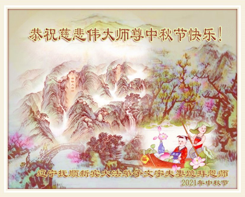 辽宁抚顺新宾大法弟子文宇夫妻恭祝慈悲伟大的师尊中秋节快乐!
