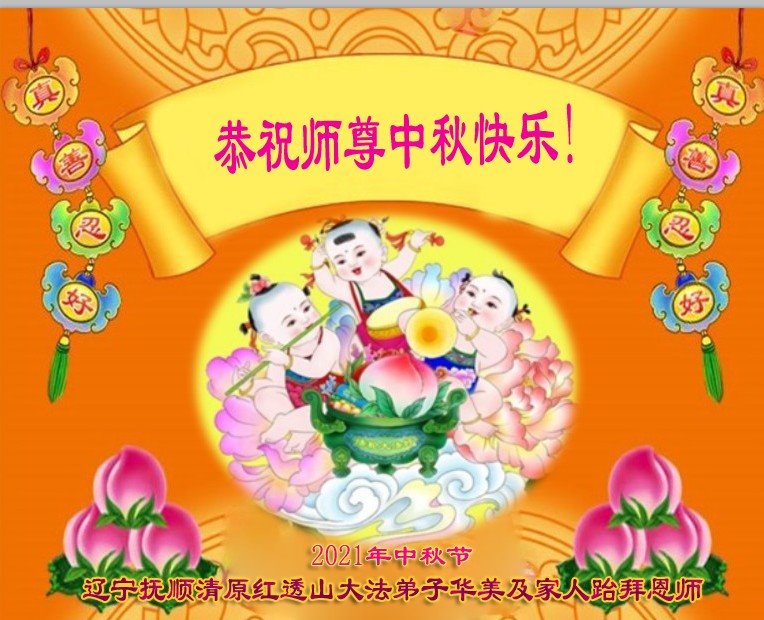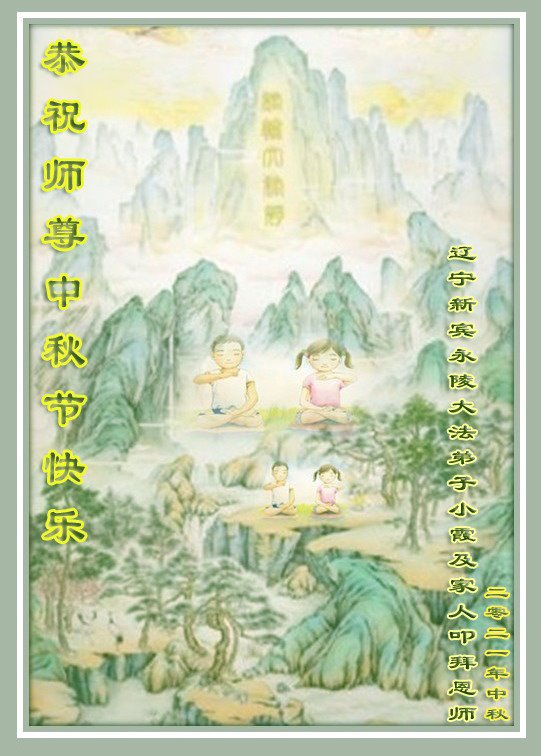 师尊您好!感谢师尊的慈悲保护与救度!我们学法小组的大法弟子一定听师尊的话,做好三件事,修好自己,多救人,兑现誓约,助师正法,跟师尊回家。 辽宁抚顺新宾大法弟子恩宇及家人恭祝慈悲伟大的师尊中秋节快乐!