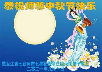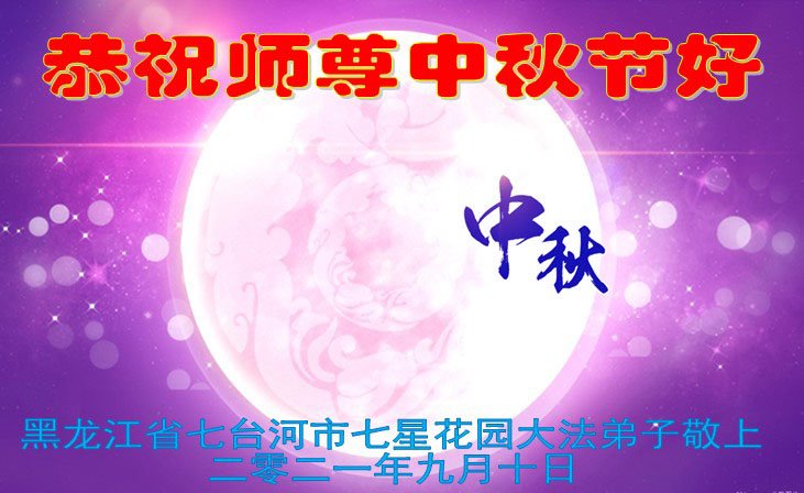 【明慧网二零二一年九月十九日】 黑龙江省七台河市七星花园大法弟子恭祝师尊中秋快乐!