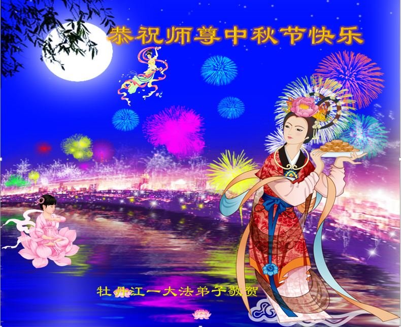 全家感恩师尊慈悲救度!借此中秋节之际恭祝师父中秋节快乐! 黑龙江牡丹江市一名八十四岁大法弟子恭祝师尊中秋节快乐!