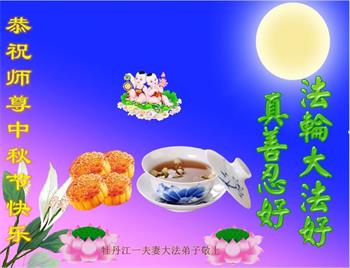 黑龙江牡丹江市一夫妻大法弟子恭祝师尊中秋节快乐!