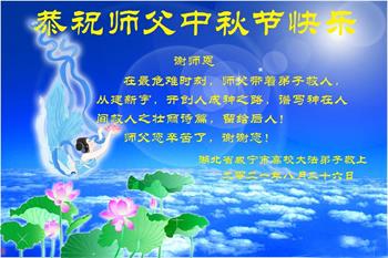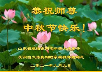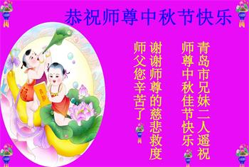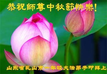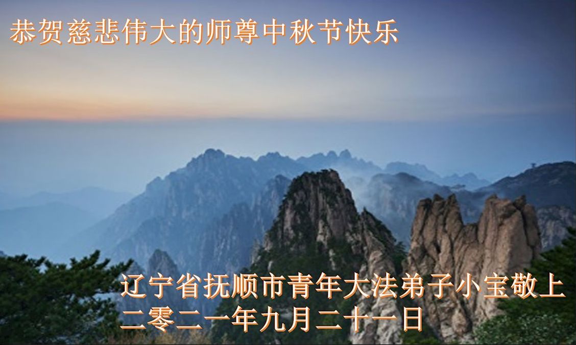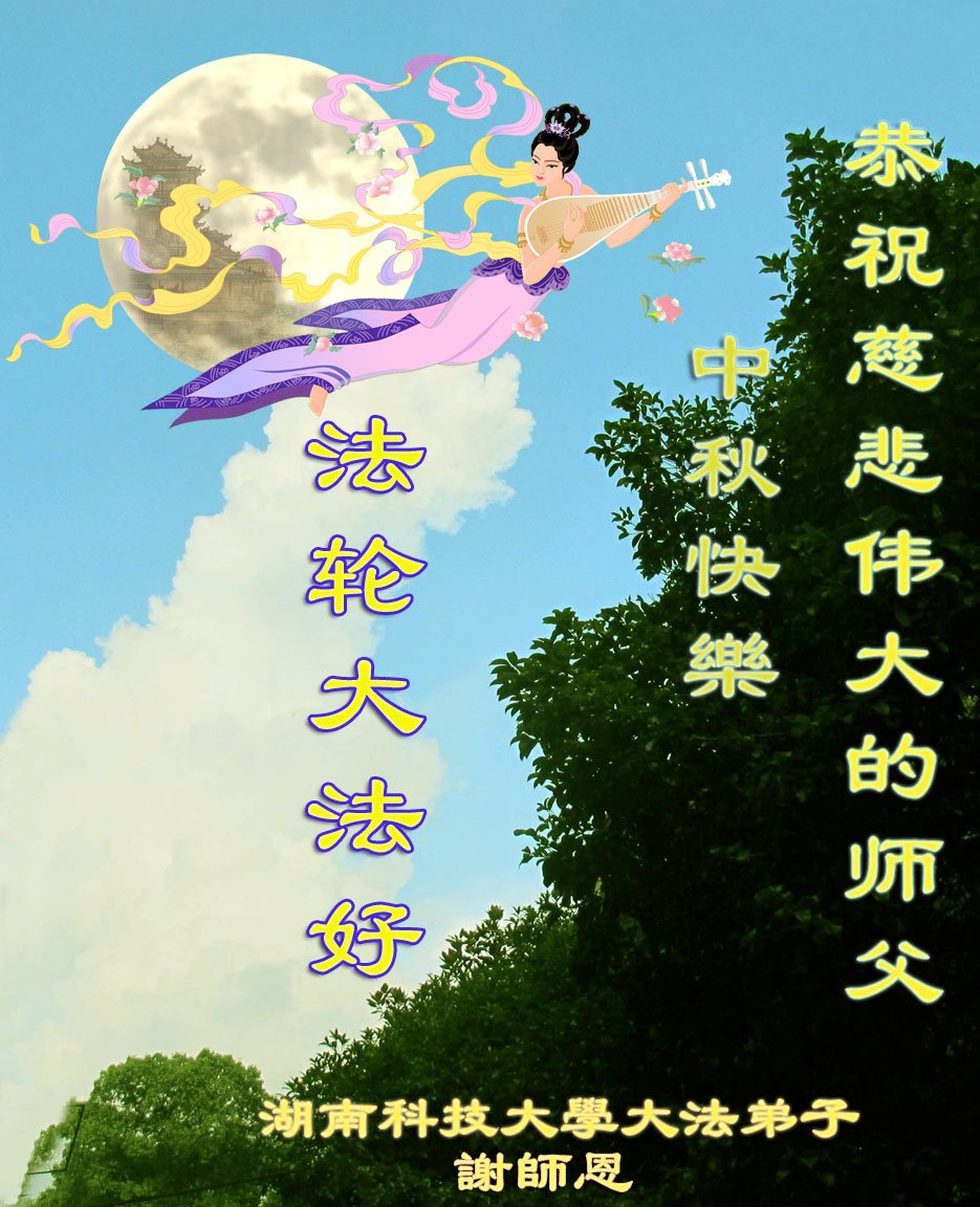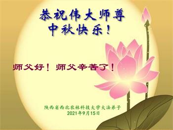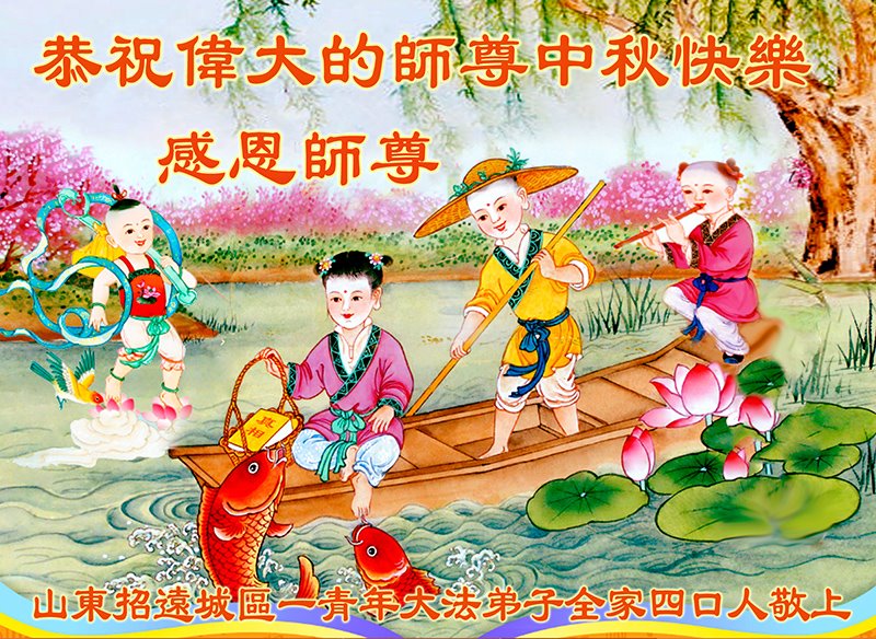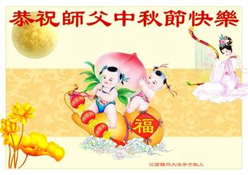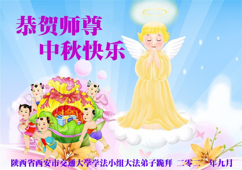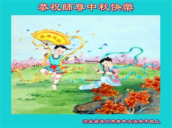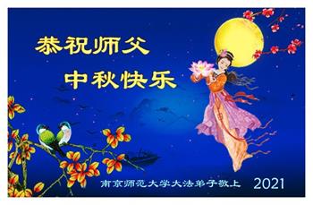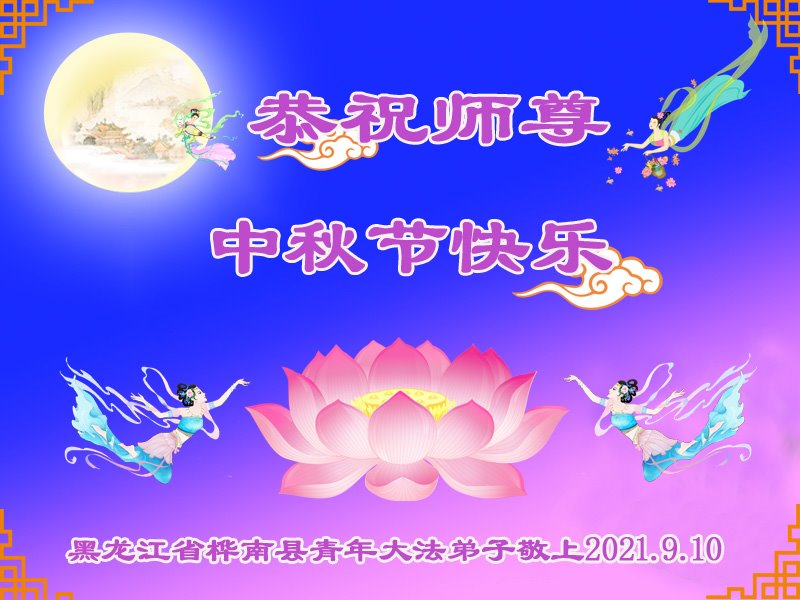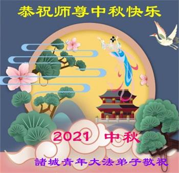 | 【明慧网二零二一年九月十九日】 月满人团圆 惟愿师尊笑 弟子感师恩 精進随师还 法轮大法洪传于世二十九年,在大法师父慈悲看护和救度下,当年的大法小弟子在大法中熔炼,已经长成青年弟子。来自全国各省市的青年大法弟子,在中秋来临之际,感恩师父的慈悲救度,恭祝师父中秋好! 河北省邢台市一青年大法弟子在贺词中说:“弟子从小在师父的慈悲保护下长大,感谢师父的慈悲救度!弟子开学在即,将去另外的城市,但弟子心里很坦然,因为有师在,有法在。弟子在新的学期里,必将认真学法,发正念,争取抓紧跟上同修们讲真相的步伐,救度一方众生。弟子一定会以苦为乐,修去安逸心,提高心性,随师父回家。” 湖南一位研究生青年大法弟子说:“一切都是师父给予的最好的保护,让曾经的‘打架学生’变成如今以全校第一的优异成绩考入国内重点艺术院校的研究生,谢谢师尊让弟子能改邪归正。在此佳节,弟子心中无比感慨和想念师父,再次恭祝师尊中秋快乐!” 北京一青年大法弟子表示:“感恩师尊慈悲救度!感恩师尊一路护持!今生能与师尊同在一世,有缘得法,不枉此行。在修炼道路上弟子一定不断向内找自己,只听师尊话,做好三件事,不被世间各种诱惑拖住精進的步伐,圆满随师还。” 黑龙江桦南县青年大法弟子恭祝师父中秋节快乐!黑龙江桦南县青年大法弟子恭祝师父中秋节快乐!感谢师父!合十叩拜师尊! 江苏常州一学法小组大法弟子恭祝师尊中秋节快乐!师尊您好!又是一年中秋佳节,感恩师尊的慈悲救度!我们学法小组的三位青年弟子及两位小弟子恭祝慈悲伟大的师尊中秋节快乐! 江苏常州一学法小组大法弟子叩拜! 二零二一年中秋 山东招远城区一青年大法弟子全家四口人恭祝伟大的师尊中秋快乐!师尊您好!我虽然从小跟妈妈一块学法修炼,但不算精進,却也没有忘记自己的使命。师尊为我们也不知操了多少心,我一定要带好两个小弟子。不管师尊正法还要多长时间,弟子一定会努力修好自己,做师尊的真修弟子,跟师尊回家。 辽宁省抚顺市新宾县一青年大法弟子恭祝师尊中秋快乐!四川省成都市一青年大法弟子恭祝师尊中秋佳节快乐!北京昌平区青年大法弟子祝师父中秋节快乐!祝师父中秋节快乐!师父您辛苦了!谢谢您的慈悲保护! 南京师范大学大法弟子恭祝慈悲伟大的师父中秋快乐!黑龙江佳木斯大学大法弟子恭祝师尊中秋快乐!江苏常州大法弟子恭祝师尊中秋节快乐!江苏常州一青年大法弟子携小弟子叩拜师尊洪恩,恭祝师尊中秋节快乐! 二零二一年九月一日 湖北省咸宁市高校大法弟子恭祝师父中秋节快乐!谢师恩 在最危难时刻,师父带着弟子救人,重建新宇,开创人成神之路,谱写神在人间救人之壮丽诗篇,留给后人! 师父您辛苦了,谢谢您! 北京昌平区一青年大法弟子恭祝师父中秋节好!谢谢师父的慈悲救度,弟子想念您。 山东省潍坊市诸城市青年大法弟子恭祝师尊中秋快乐!广州高校大法弟子恭祝慈悲伟大的师尊中秋节快乐!恭祝慈悲伟大的师尊中秋节快乐! 广州高校大法弟子敬祝 唐山玉田姐弟俩青年大法弟子恭祝师父中秋节快乐!恭祝师父中秋节快乐! 感恩师尊慈悲保护!师父谢谢您! 唐山玉田姐弟俩青年大法弟子敬上 二零二一年九月九日 四川南充全体青年大法弟子恭祝慈悲伟大的师尊中秋快乐!陕西省西安市交通大学学法小组大法弟子恭祝师尊中秋快乐!湖南科技大学湘潭大法弟子恭祝慈悲伟大的师父中秋好! 法轮大法好!中秋谢师恩!广东省高校全体法轮大法弟子恭祝慈悲伟大的师尊中秋节快乐!辽宁抚顺一年轻大法学员恭祝师父中秋节快乐!山东省威海市区两名年轻大法弟子携亲属恭祝师尊中秋节快乐!感谢慈悲的师父一直的看护!弟子今后一定努力学法修炼。叩拜谢师恩! 大陆青年大法弟子祝师尊中秋快乐!吉林白城一高校大法弟子敬祝师尊中秋节快乐!师恩浩荡,感恩师尊慈悲苦度! 湖南青年大法弟子叩拜恭祝师尊中秋节快乐!湖南研究生大法弟子向师父问好! 青年大法弟子叩拜师尊!向师父问好,恭祝师尊中秋节快乐! 一切都是师父最好的保护,让曾经的“打架学生”到如今以全校第一的优异成绩考入国内重点艺术院校,谢谢师尊让弟子能改邪归正,在此佳节,弟子心中无比感慨和想念师父,再次恭祝师尊中秋快乐!阖家欢乐! 湖南青年大法弟子叩拜 2021年9月9日 湖南郴州市两名青年大法弟子恭祝师尊中秋节快乐!湖南青年大法弟子叩拜 吉林省长春一青年大法弟子恭祝师尊中秋快乐!河北省大学在校大法弟子恭祝师父中秋节快乐!黑龙江省海伦市一青年女大法弟子恭祝师尊中秋好!师尊,弟子想念您!愿邪恶早日尽除,众生皆得救度,期待众大法弟子与师团圆时! 河北省邢台市一青年大法弟子恭祝慈悲伟大的师父中秋节快乐!我是河北省邢台市一名青年大法弟子,恭祝慈悲伟大的师父中秋节快乐!弟子从小在师父的慈悲保护下长大,感谢师父的慈悲救度! 弟子开学在即,将去另外的城市,但弟子心里很坦然,因为有师在,有法在。弟子在新的学期里,必将认真学法,发正念,争取抓紧跟上同修们讲真相的步伐,救度一方众生。弟子一定会以苦为乐,修去安逸心,提高心性,随师父回家。 成都青年大法弟子恭祝慈悲伟大的师尊中秋快乐!吉林省公主岭市青年大法弟子恭祝慈悲伟大的师尊中秋快乐!师尊辛苦了!黑龙江牡丹江市一青年大法弟子恭祝师尊中秋节快