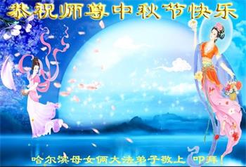 黑龙江哈尔滨市母女俩大法弟子恭祝师父中秋节快乐!