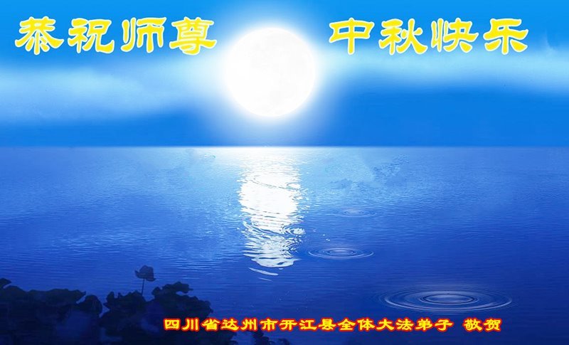 师父您好!您辛苦了!中秋节快要到了,首先在这里恭祝师尊中秋节快乐! 在这阖家欢乐的日子里,我们大法弟子想念您师父,希望您早日回大陆。师父;弟子一定要听您的话,努力做好三件事,精進、精進、再精進。 四川省达州市开江县全体大法弟子恭祝师尊中秋快乐!