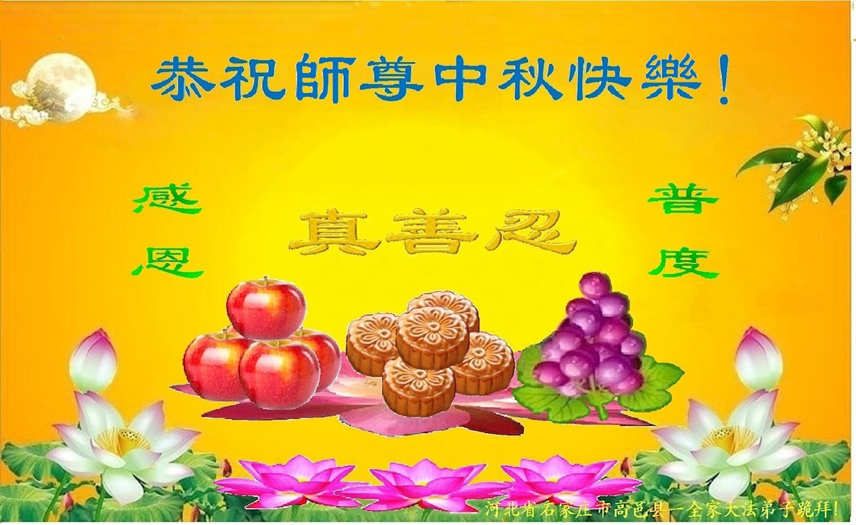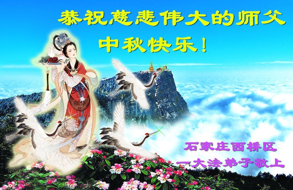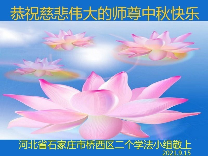 恭祝师尊中秋节快乐! 我们要修好自己,救度更多众生。 河北省石家庄大法弟子恭祝师尊中秋快乐!