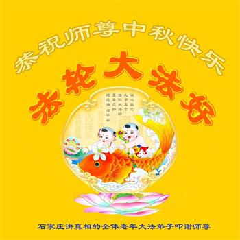 河北省石家庄讲真相的全体老年大法弟子恭祝师尊中秋快乐!