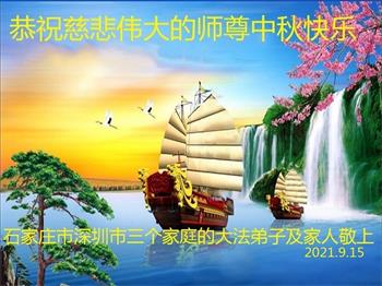 河北省石家庄市深泽县一夫妻大法弟子和全家恭祝慈悲伟大的师尊中秋节快乐! 河北省石家庄市裕华区九里庭院小区大法弟子恭祝师尊中秋节快乐!