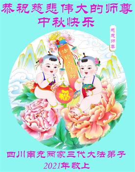 四川南充两家三代大法弟子恭祝慈悲伟大的师尊中秋快乐!