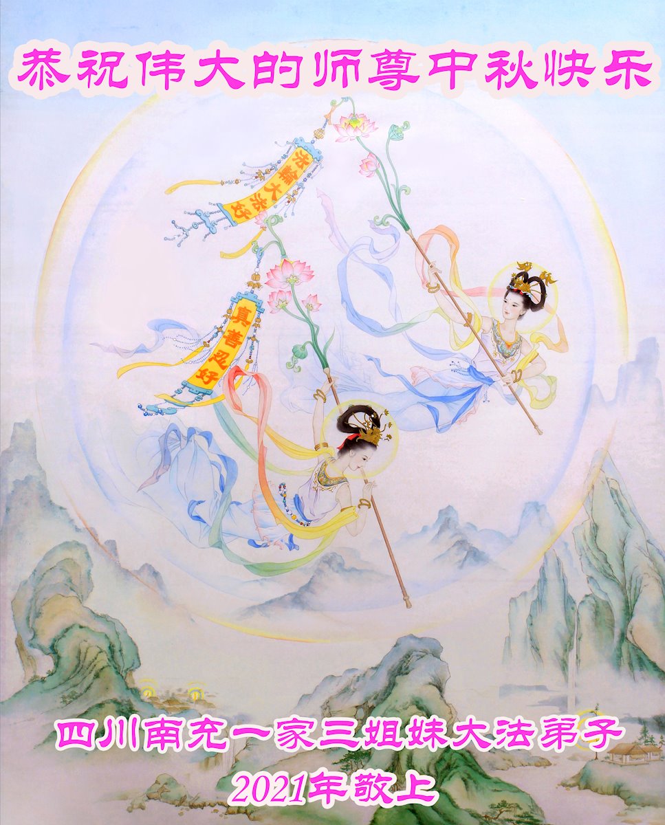四川南充一家三姐妹大法弟子恭祝慈悲伟大的师尊中秋快乐!