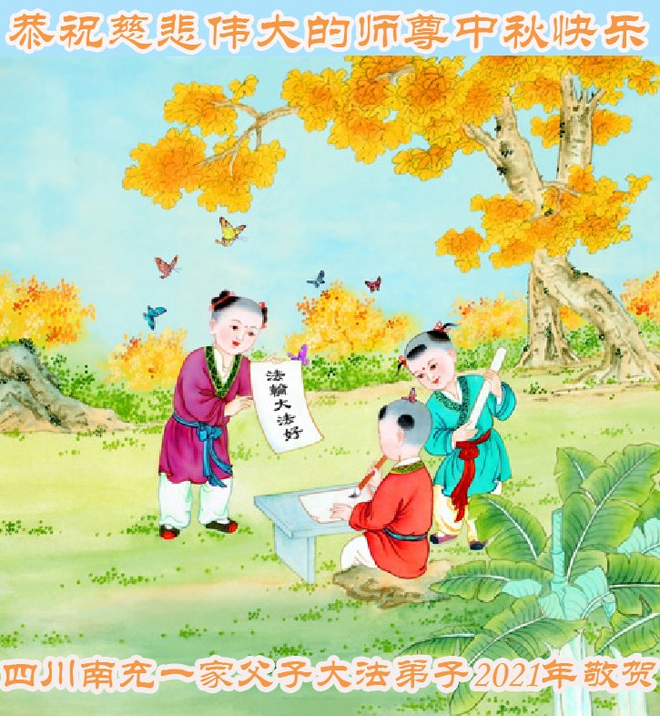 四川南充一家父子大法弟子恭祝慈悲伟大的师尊中秋快乐!