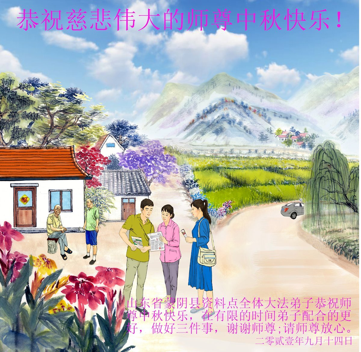 【明慧网二零二一年九月二十一日】 山东省临沂市蒙阴县大法弟子恭祝慈悲伟大的师尊中秋节快乐!