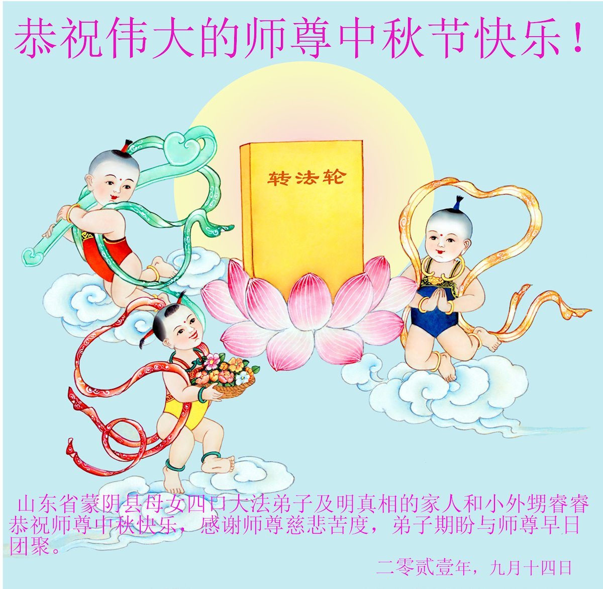 山东省临沂市蒙阴县遭受迫害全体大法弟子恭祝师父中秋节快乐!