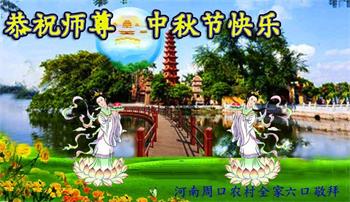 恭祝师尊中秋节快乐!感恩师尊一路保护,千万年的等待,今生有幸接圣缘,牵师尊手,做一名正法时期大法弟子。这荣耀弟子珍惜无比,更珍惜所剩不多的实修时光,谨记使命,在救度众生与提高心性中成就新宇的觉者。 跪拜叩首! 山东招远某农村全体大法弟子合十 河南周口农村一学法小组全体大法学员恭祝师尊中秋节快乐!