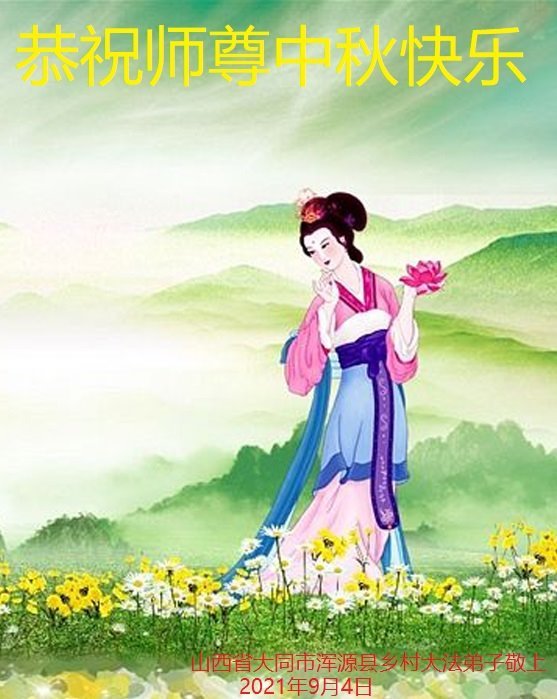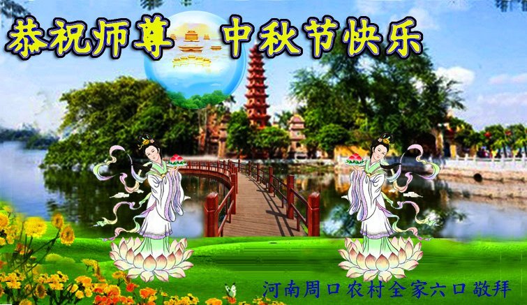 中秋节快要到来了,弟子携全家人向师父问好!师父您辛苦了!我们很想念师父!弟子要努力修好自己,多救众生,三件事一定要做好,跟上正法進程,修炼成一个合格的大法弟子,少点叫师父操心。 谢谢师父的慈悲苦度! 山西省大同市浑源县乡村大法弟子敬上! 吉林省通化柳河县三个乡村全体大法弟子恭祝慈悲伟大的师尊中秋节快乐!